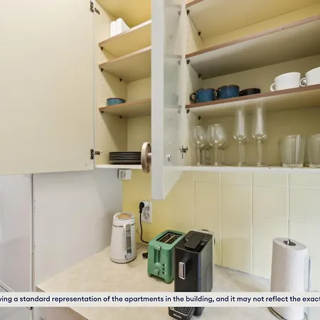 The apartment is equipped with self-catering facilities, including a kitchen with an electric kettle, coffee and tea making machines, and a kitchenware.