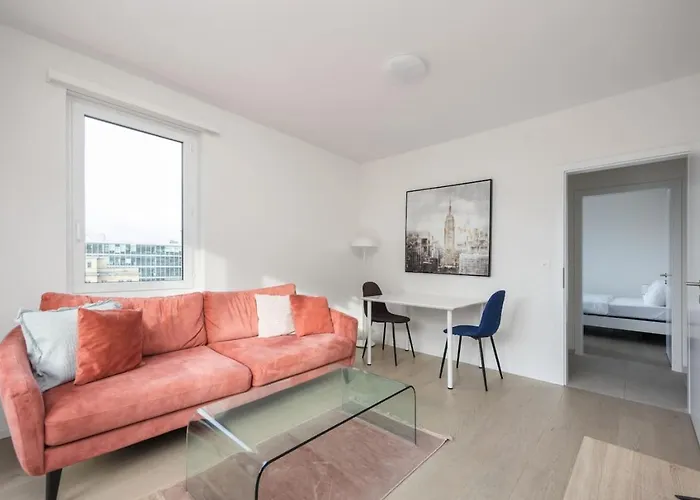 The 1-room Grand Terrace Suite Elite 4,5Br Ba52 Zurich is located merely 5 minutes by foot from MFO-Park and overlooks the city. Limmat River is 2.8 miles from the apartment, while Leutschenpark is situated 1.1 miles away.
