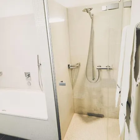Luxus Wohnung Mit Garten includes a separate toilet and a shower for your comfort. Bath sheets and towels can also be found.